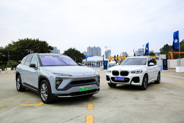 第一个测试科目是加速&制动性能测试。蔚来ES6搭载了前永磁 后感应双电机组合,总功率高达400千瓦,总扭矩达725牛米,可实现百公里加速4.7秒的成绩。宝马X3则仅搭载一台2.0T涡轮发动机,百公里加速成绩为8.9秒。显然这一环节,蔚来ES6毫无悬念的胜出了。